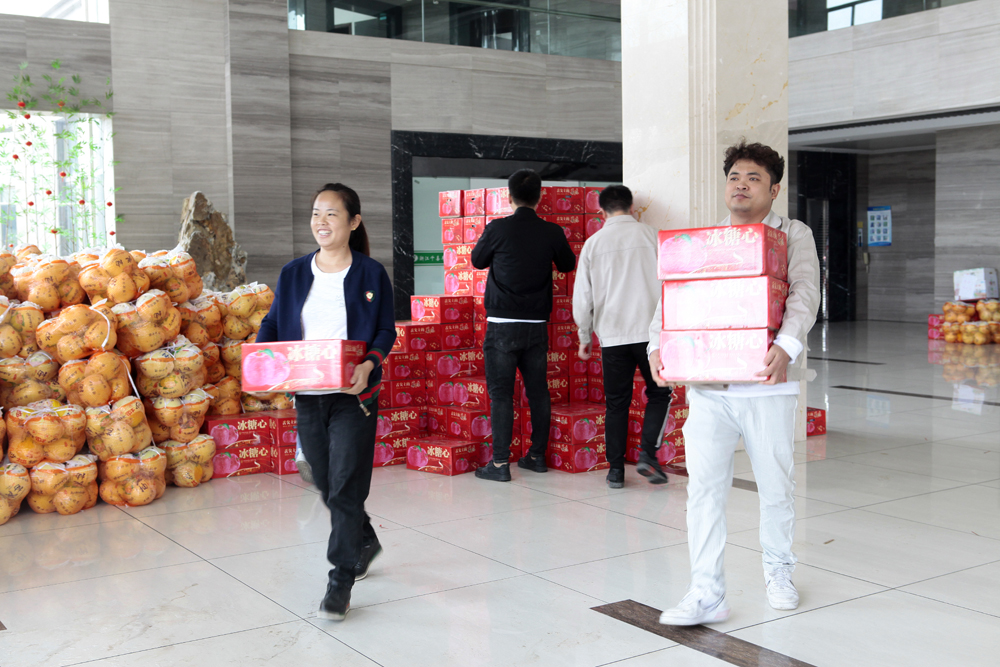 大廳里擺放著琳瑯滿目的禮品,千喜家人來回走動搬運著,每個人的臉上都綻放出美麗的笑容,現場處處洋溢著節日的歡樂氛圍,大家有說有笑的,好不熱鬧。