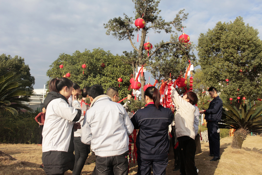 之后,主持人再次邀請各事業部的總經理登臺,由他們分別寫下2020年的第一份心愿,許下對未來的美好愿景,并親自將自己寫的心愿卡掛到廠區的“心愿樹”上。在他們的引領下,全體在場人員紛紛移動到廣場上的“心愿區”,在擺放了各式各樣心愿卡的桌臺旁,大家仔細的挑選著中意的卡片,一筆一劃寫下自己的心愿,然后鄭重其事的走到心愿樹前,將自己的心愿卡掛在高高的枝丫上,很快,一張張小小的心愿卡,便凝結成了一棵盛開著許許多多心愿的大樹,乘著微風飄揚著。 隨著心愿樹上的心愿卡越來越“茂盛”,掛好心愿卡的人員便來到了“禮品區”。在這里,各個事業部負責發放春節禮品的工作人員,已經早早的守候在此了,看著他們一張張熟悉的臉龐,熟練地將禮品一一發到大家的手中,共同分享新年的喜悅與期盼。