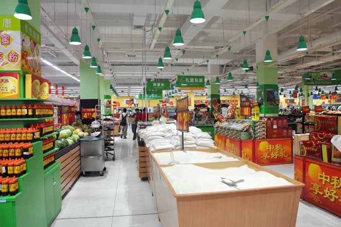 超市各區裝修風格迥異。因此,在滿足照度標準的前提下,燈具及光源的選擇盡可能體現不同區域的建筑裝修特色。